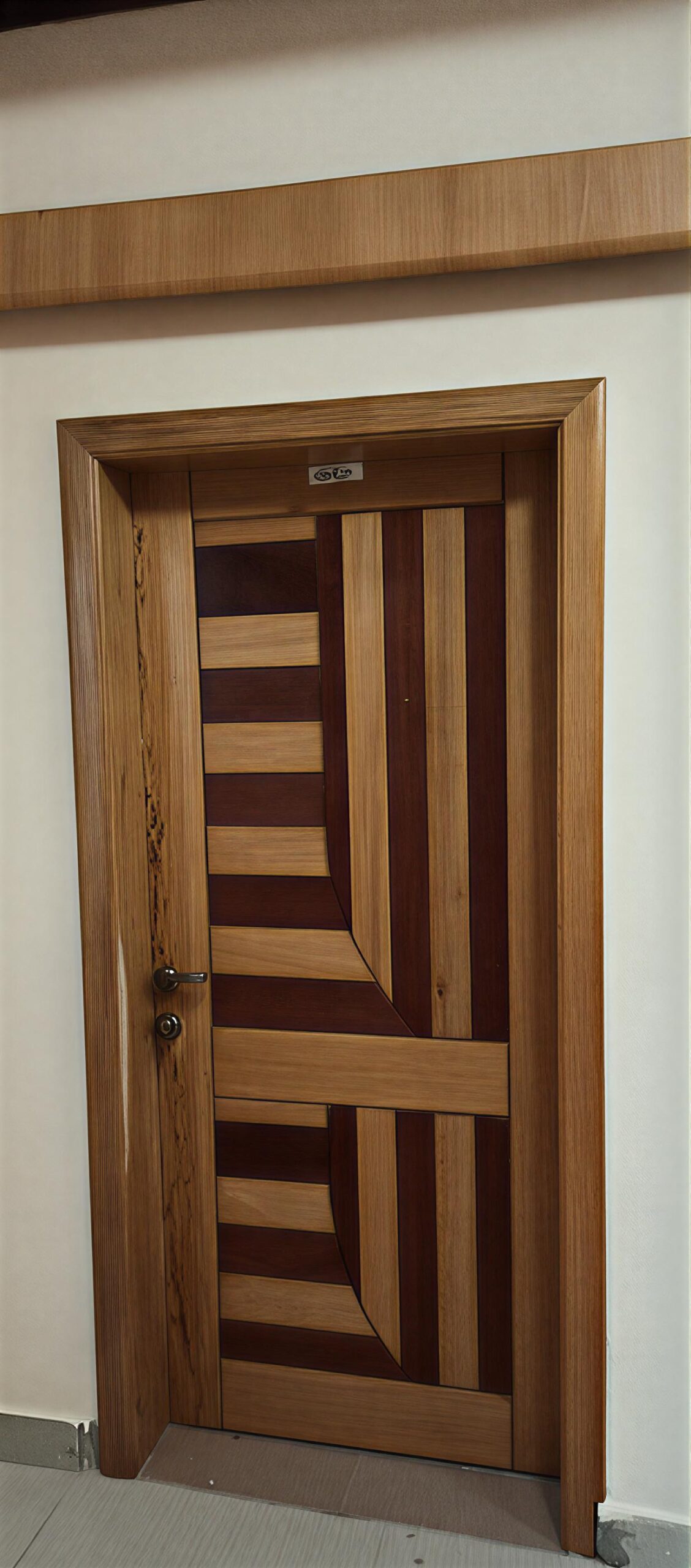 The Equinox Two-Tone Door turns a standard functional item into a work of art. We moved away from plain, single-color doors to create something dynamic and modern. The design features a stunning geometric patchwork pattern, created by alternating strips of light and dark wood.